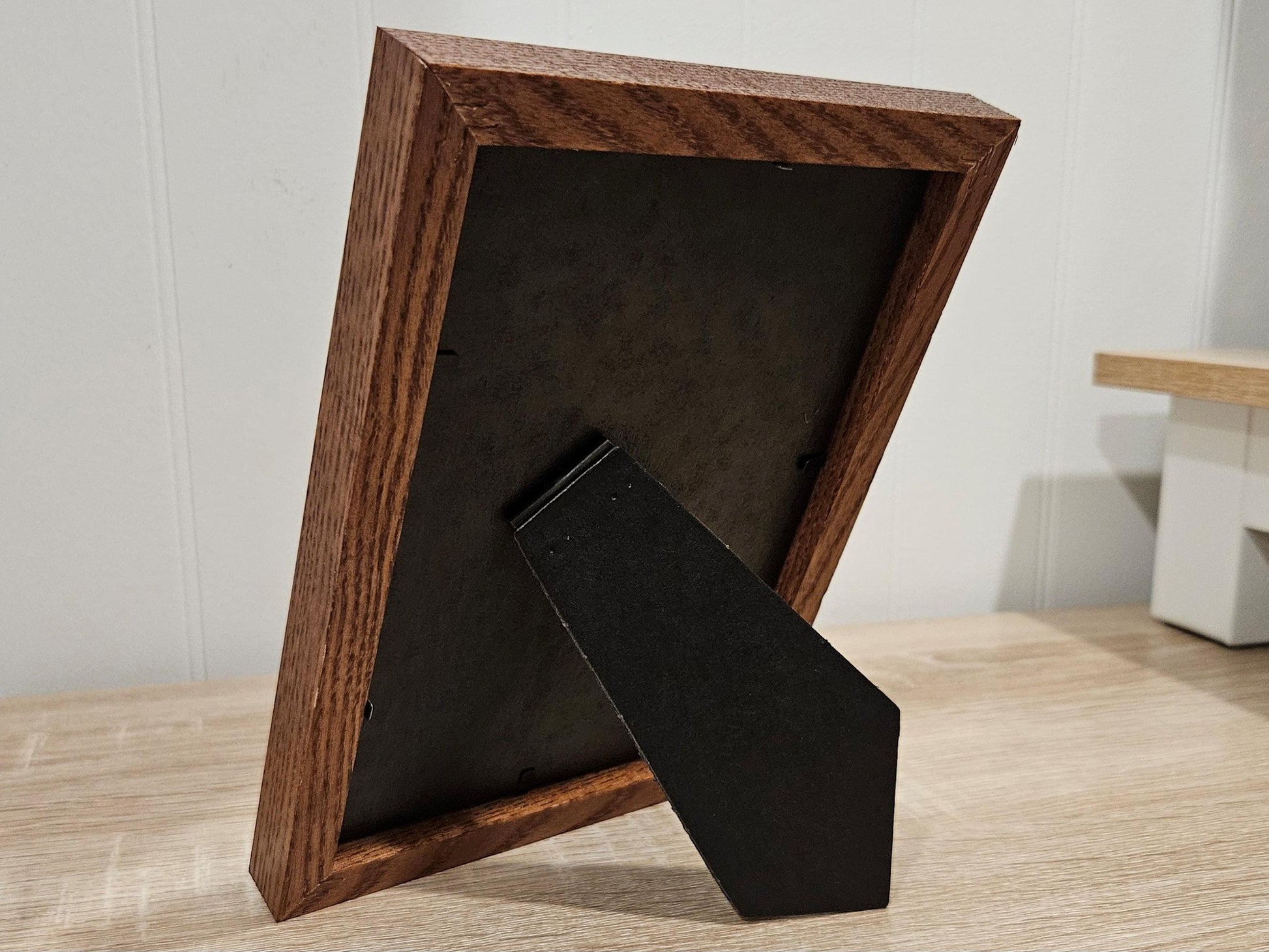 Wood mat insert that fits into a 5x7 frame. Has a 2 1/4" x 2 7/8" heart opening for a photo. There is an option to buy the outer frame w/back. The mat is 1/8" thick. The frames that work the best are frames in which the backs come all the way off, so that there will be some wiggle room.