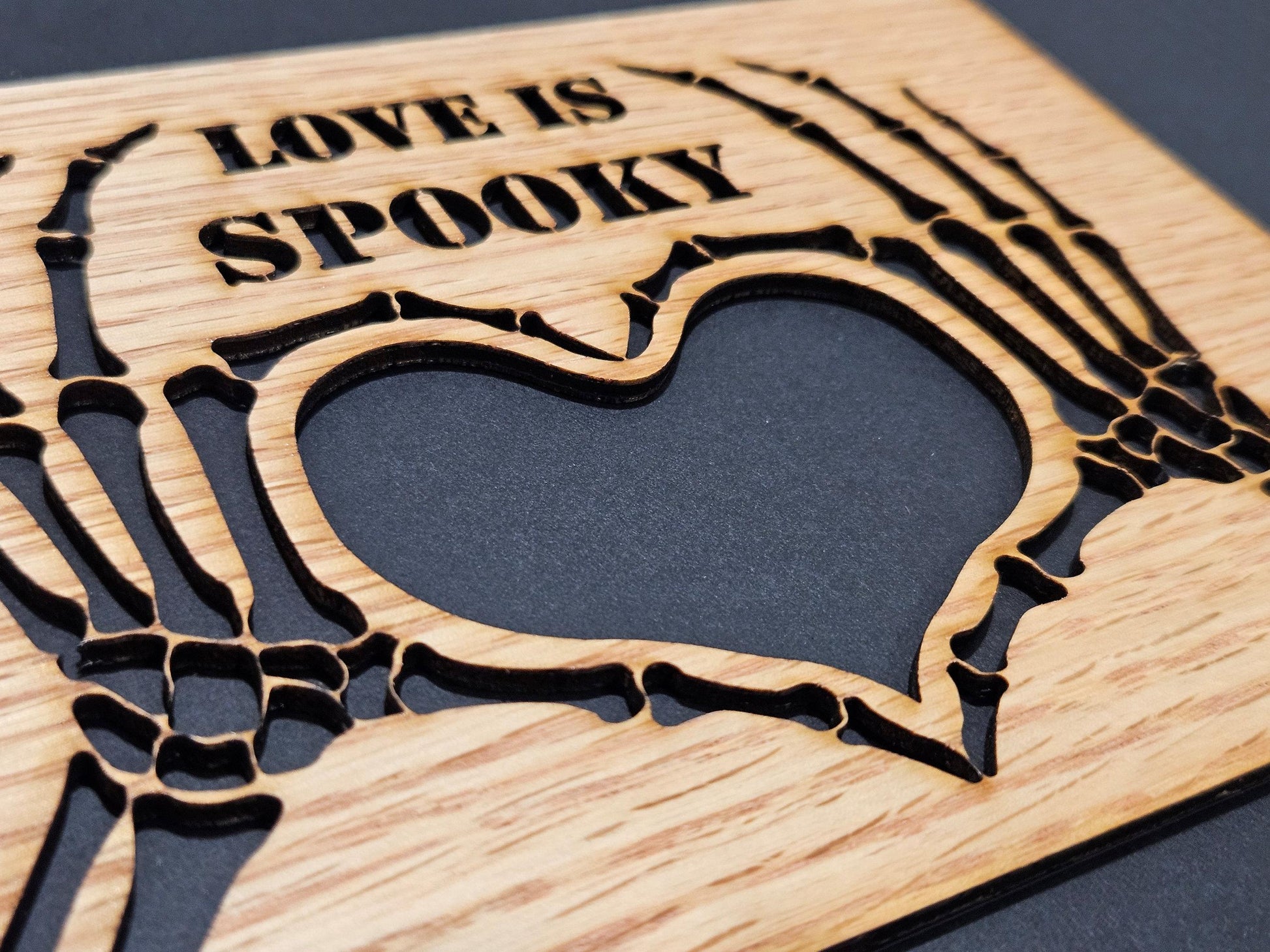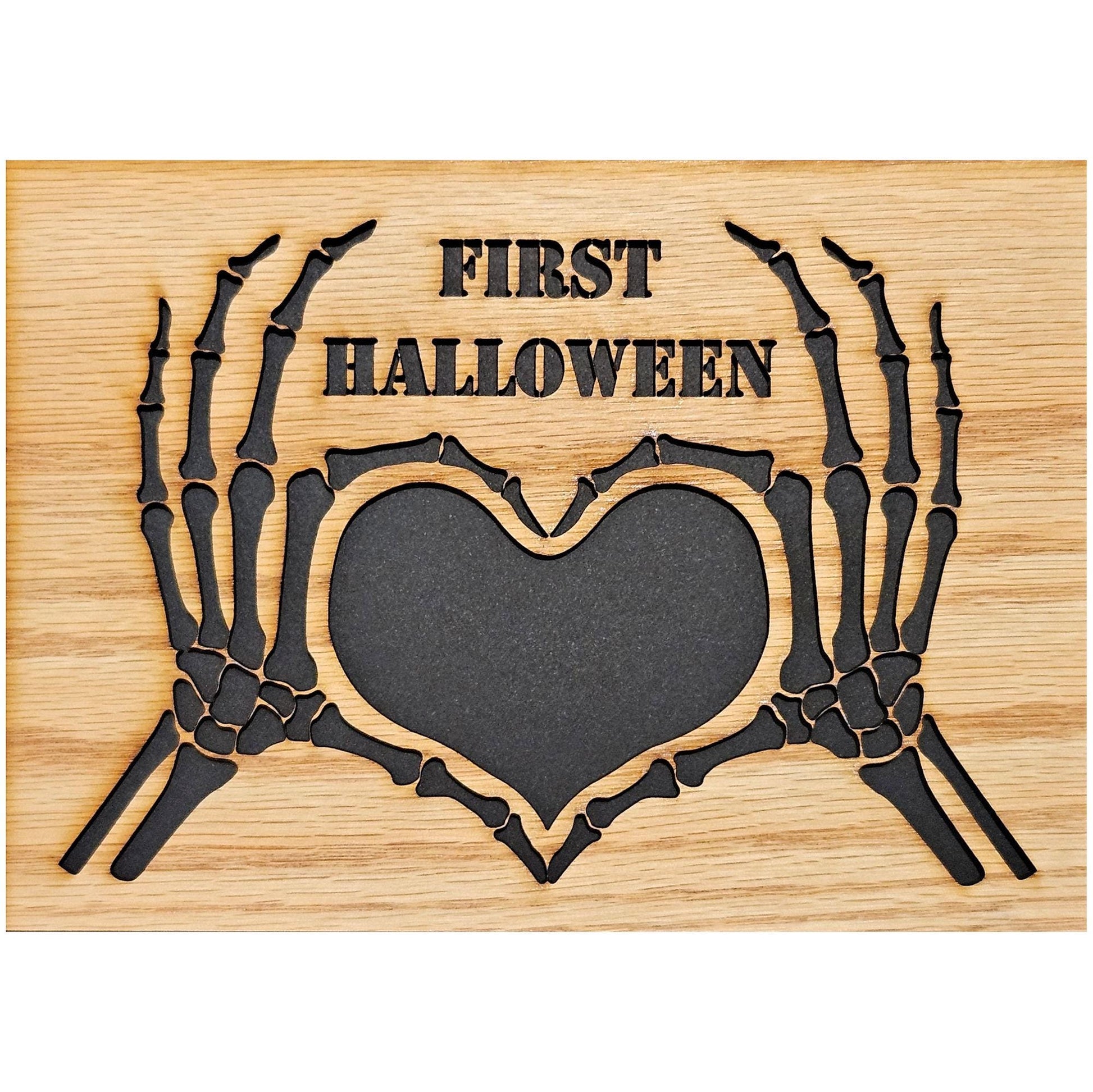 5x7 Love Is Spooky Skeleton Heart Hands Picture Frame with 2 1/4" x 2 7/8" opening for Photo - First Halloween - Halloween Decor