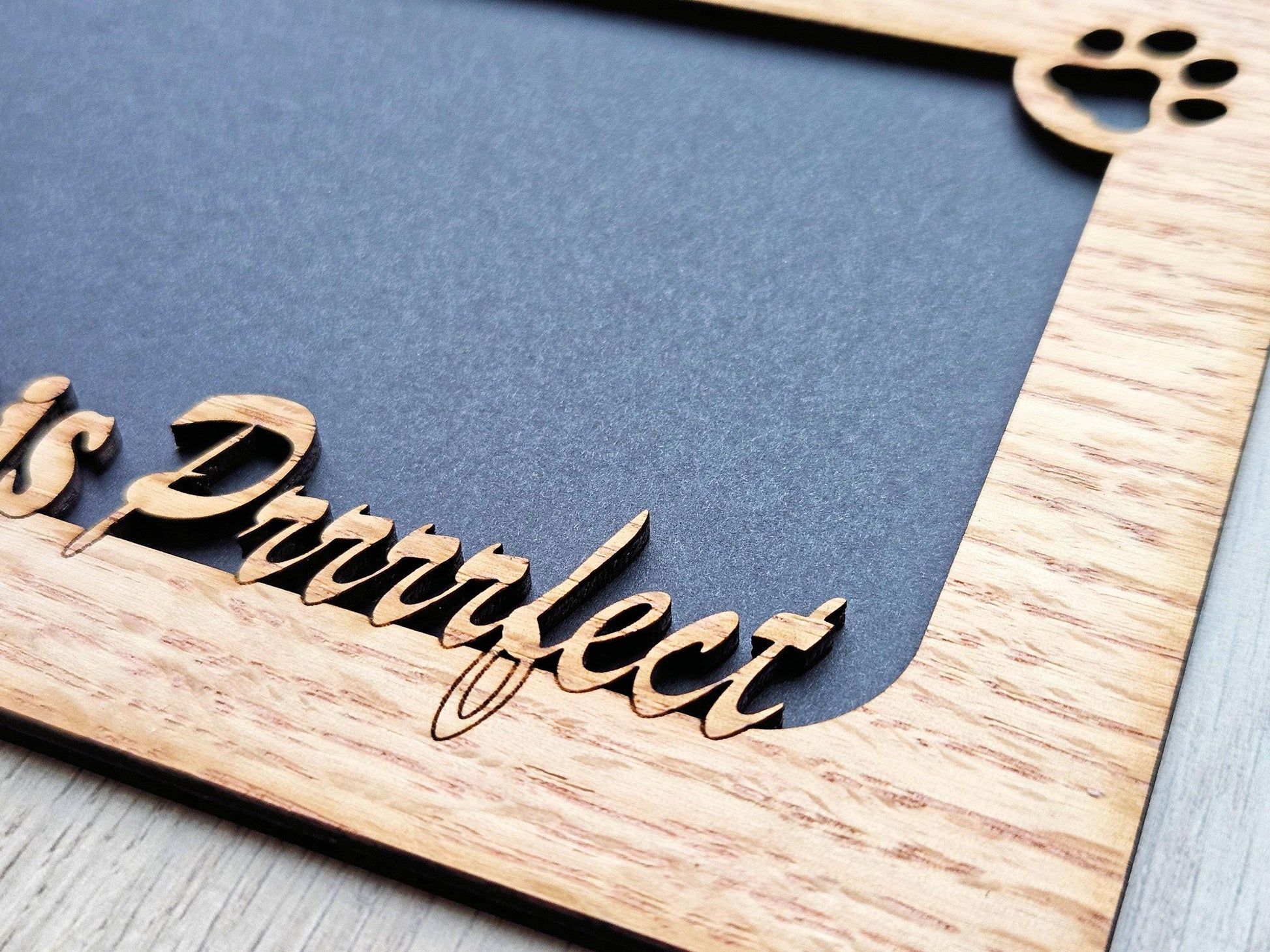 This “My Cat is Purrrrfect”, 5x7 oak veneer wood mat insert fits into a 5x7 frame. There is the option to order the mat by itself or with a frame. The opening holds a 4 x 6 (landscape) photo.